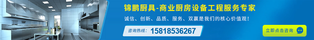 錦鵬廚具是一家專業(yè)從事星級酒樓、食堂、學校、餐廳、工廠、機關、醫(yī)院等商用中央廚房設備工程設計售后維修保養(yǎng)為一體的現(xiàn)代化企業(yè),廚具設備廠家。承接不銹鋼廚房廚具、酒店廚房設備工程、不銹鋼廚房設備工程、商用廚房工程設計及制冷制熱系統(tǒng)工程。業(yè)務范圍覆蓋廣州、深圳、東莞、佛山、惠州等地,公司依據(jù)客戶要求和現(xiàn)場實際情況精心設計,合理安排,創(chuàng)造節(jié)能環(huán)保優(yōu)質(zhì)產(chǎn)品和熱情服務。